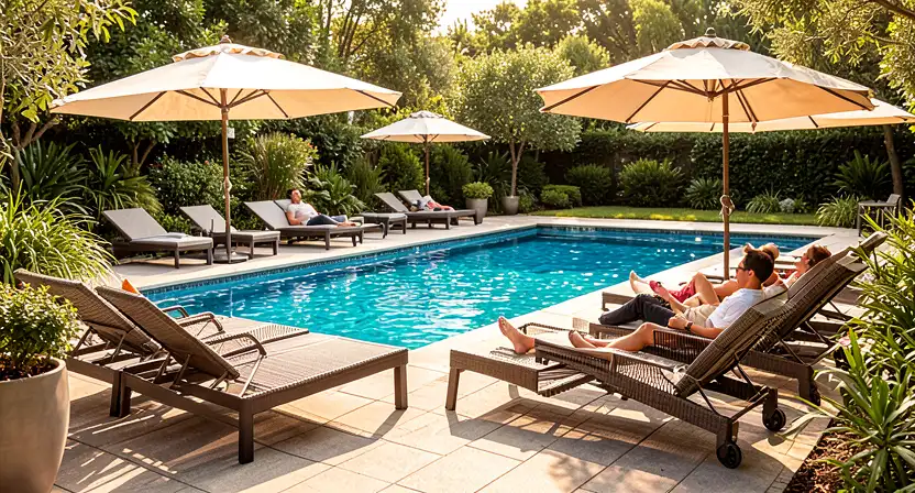 - Шезлонги и лежаки: Выбирайте модели с регулируемой спинкой (минимум 3-5 положений) для максимального комфорта. Ширина сиденья должна быть не менее 60 см для взрослого человека. Колесики значительно упростят перемещение шезлонгов по периметру бассейна.